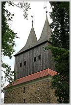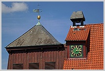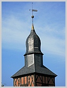 senkrecht verbrettertem Turmaufsatz aus dem 18.Jahrhundert, die beiden