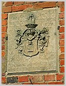 Inschriftentafel mit Wappen, demnach 1696 nach "100 Jahren wüst gelegen