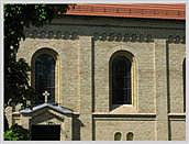 Fensterabschlüsse rundbogig vergrößert, moderne Fenster mit Bleiverglasungen;