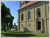 Stockphoto-Galerie Nr.1b Foto, Fotografie, Bild, Abbildung Dorfkirche, Dorffriedhof, ländliche Kirchenanlage, Grabstein, kirchliche Außenanlagen Historische Gebäude und Architekturdetails im ländlichen Raum