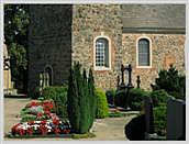Stockphoto-Galerie Nr.1b Foto, Fotografie, Bild, Abbildung Dorfkirche, Dorffriedhof, ländliche Kirchenanlage, Grabstein, kirchliche Außenanlagen Historische Gebäude und Architekturdetails im ländlichen Raum