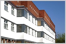 Berlin, heute unter anderem Robert-Koch-Forum; Ziegel-Terrakotta-Fassade nach
