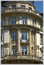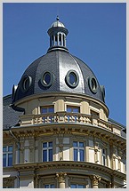 Überarbeitung der Putz-Stuck-Fassade und Wiederherstellung der Eckkuppel