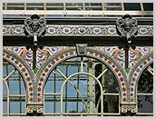 Eisen-Glas-Konstruktion mit keramischen Verzierungen, inspiriert durch