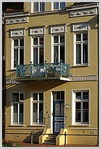 Sandstein-Putz-Stuck-Fassade, Hauptgliederung der Fassade durch