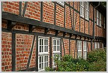 Fachwerk-Ausfachungen mit Handschlag-Backsteinen, heute Nutzung als Büro;