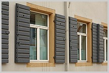 sämtliche Fenster mit Klappläden ausgestattet (Lamellenklappen);