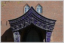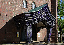 Portalvorbau vom Bildhauer Felix Kupsch (1883-1969), unter der dunkelblauen / schwarzblauen Glasur verbirgt sich