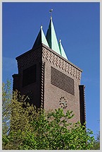 Expressionismus mit einem separat vorgesetzten und nur durch einen Kreuzgang mit dem Kirchenraum