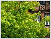 (nicht ursprünglich); an der Südseite Fassadenbewuchs mit Efeu; auf den ersten Bildern im Hintergrund
