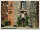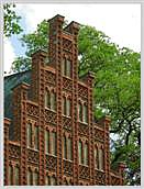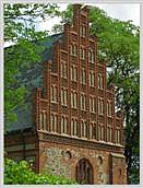 Mischmauerwerksflächen vmtl. ursprünglich verputzt; prächtiger Backstein-Stufengiebel