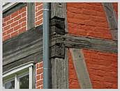 Fachwerkbau um 1800 (?) mit Ziegelausfachung und vorkragendem Oberstock,
