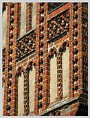 (Backstein-Maßwerk) auf der Westseite, Ostgiebel bescheidener, Innenraum 1857 und 1903-1904
