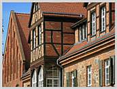 Fachwerkbauweise, Stockwerkbau mit Ziegelausfachung, zweifach