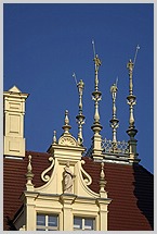 Dohna und von Callenberg in einem gesprengten Giebel, die Sandsteinskulpturen Flora,
