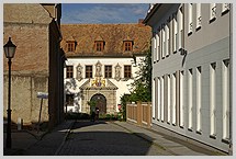 ("Dachhäuschen"); über dem Sandsteinportal das Allianzwappen derer von