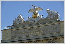 triumphbogenartige Mittelteil ist bekrönt durch einen Reichsadler auf der Weltkugel, die