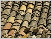 gekrümmten Ziegelformen, teilweise sehr flache Hohlziegel / Schalenziegel; Dachdeckungen