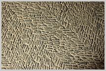 Trennstreifen aus Keramik (wohl plattenförmige Dachziegel); als Wegebelag im