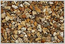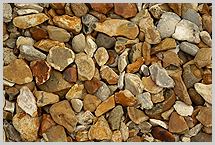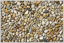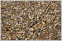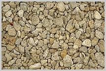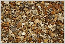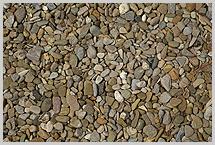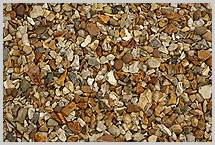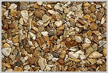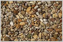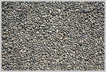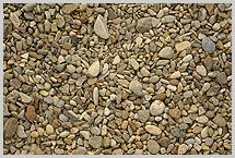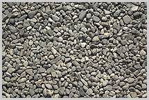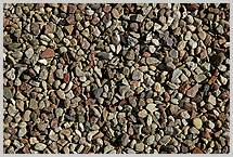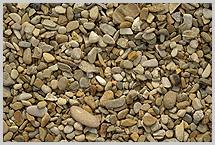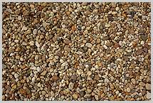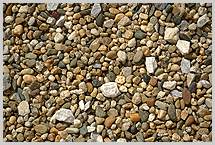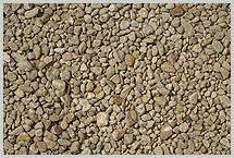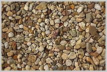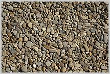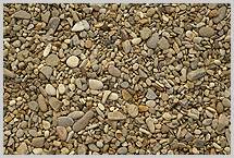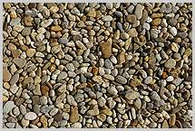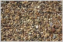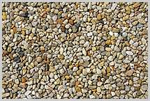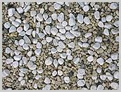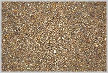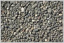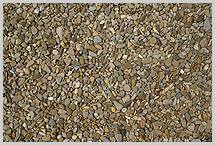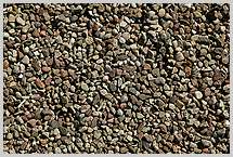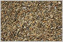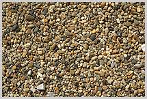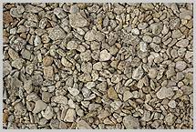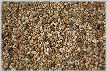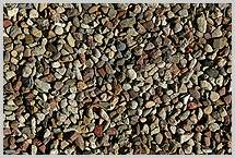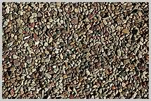 überwiegend aus Quarzkieseln (Rollkies, Naturkies), durchsetzt mit Splitt aus