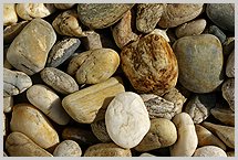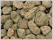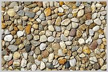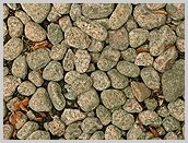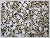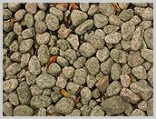 Bodenbelag, Zierbelag aus Granit oder Porphyr, gerundete Steine / Kies ca. 30-80 mm (Rollkies, Flusskies,