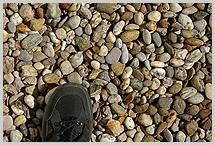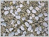 Bodenbelag, Wegebelag aus Kalksteinkies, Rollkies