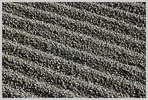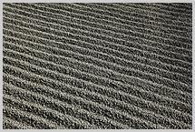 Rechen gleichmäßig geharkte Kiesdecke aus gleichkörnigem Kies,