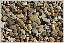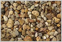 fast durchgängig fein gerundete Steinchen etwa 5-30 mm (wohl Flusskies / Strandkies); Aufnahmen bei Sonnenschein, Aufnahmedatum: 21.6.2015