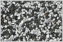 aus Basalt und weißem Quarz, Steingrößen / Korngrößen etwa 10-25 mm;