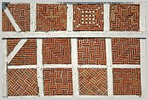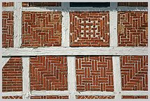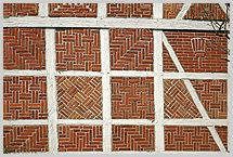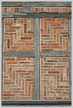 Ziegelausfachung in Ziersetzung; flächenbündige Fachwerk-Ausfachung mit Ziegeln in Ziersetzung,