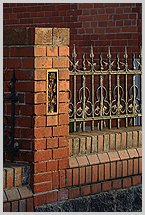 mit Formziegeln (Sohlbankplatten ?), Zaunfelder aus geschmiedetem Eisen, die