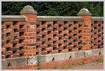 ("Zaunfelder") aus durchbrochenem 1/2-Stein-Ziegelmauerwerk (versetzt, durchbrochen,