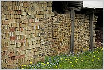 (oder komplett ersetzte ?) Ausfachung mit Ziegeln in unsystematischer