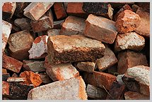 geschüttete / gelagerte Abbruchziegel im "Klosterformat" zur