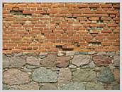 homogenes Ziegelmauerwerk und Natursteinmauerwerk (Feldsteinmauerwerk,
